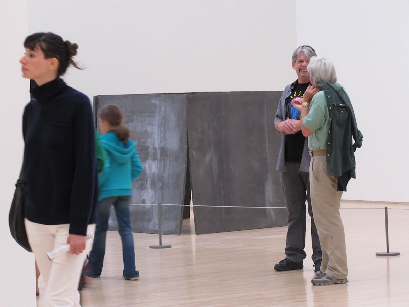 | была в нашем SFMOMA на 75 лет его существования вот и я решила на ваш суд картинки с выставки принести: "люди наслаждаются современным искусством" особенно мне работники музея понравились с какой тоской они смотрят на это всё ... я правда их в упор снимать не осмелилась. только издали...